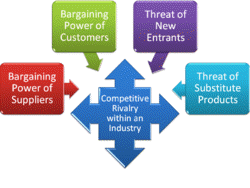 Porter's 5 forces analysis is a framework for the industry analysis and business strategy development developed by Michael E. Porter of Harvard Business School in 1979 . It uses concepts developed in Industrial Organization (IO) economics to derive 5 forces that determine the competitive intensity and therefore attractiveness of a market. Attractiveness in this context refers to the overall industry profitability. An "unattractive" industry is one where the combination of forces acts to drive down overall profitability. A very unattractive industry would be one approaching "pure competition". Porter referred to these forces as the micro environment, to contrast it with the more general term macro environment. They consist of those forces close to a company that affect its ability to serve its customers and make a profit. A change in any of the forces normally requires a company to re-assess the marketplace. The overall industry attractiveness does not imply that every firm in the industry will return the same profitability. Firms are able to apply their core competences, business model or network to achieve a profit above the industry average. A clear example of this is the airline industry. As an industry, profitability is low and yet individual companies, by applying unique business models have been able to make a return in excess of the industry average. Strategy consultants occasionally use Porter's five forces framework when making a qualitative evaluation of a firm's strategic position. However, for most consultants, the framework is only a starting point or 'check-list' they might use. Like all general frameworks, an analysis that uses it to the exclusion of specifics about a particular situation is considered naive. Porter's Five Forces include three forces from 'horizontal' competition: threat of substitute products, the threat of established rivals, and the threat of new entrants; and two forces from 'vertical' competition: the bargaining power of suppliers, bargaining power of customers. According to Michael E. Porter, the five forces model should be used at the industry level; it is not designed to be used at the industry group or industry sector level. An industry is defined at a lower, more basic level: a market in which similar or closely related products and/or services are sold to buyers. Firms that compete in a single industry should develop, at a minimum, one five forces analysis for its industry. Porter makes clear that for diversified companies, the first fundamental issue in corporate strategy is the selection of industries (lines of business) in which the company should compete; and each line of business should develop its own, industry-specific, five forces analysis. The average Global 1,000 company competes in approximately 52 industries (lines of business).